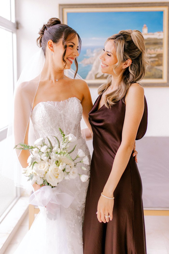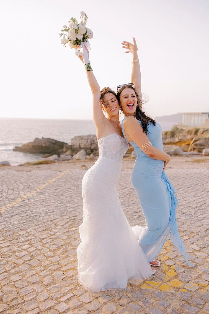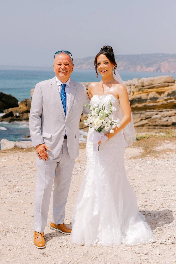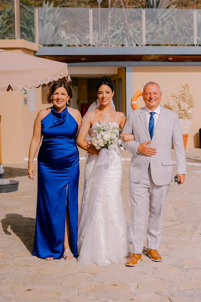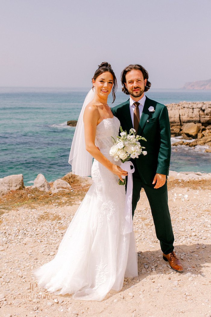 The following day, the couple exchanged vows at Forte da Cruz, overlooking the sea.
