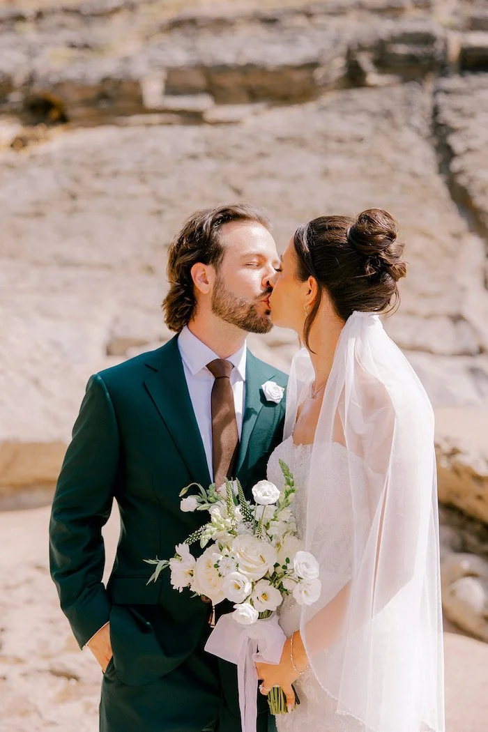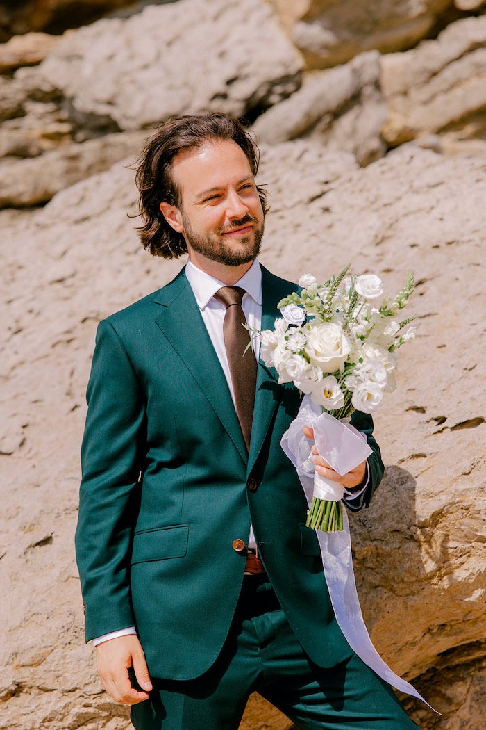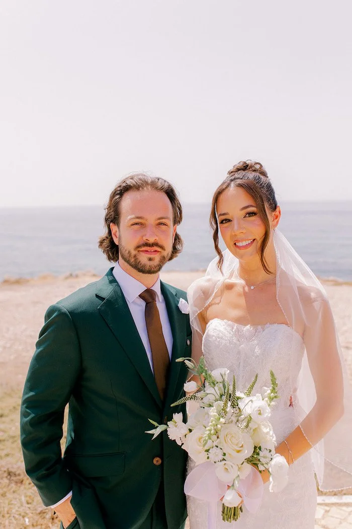 The bouquet was designed to feel natural and effortless, with a light, flowing shape that complemented the coastal setting and the movement of the sea air.