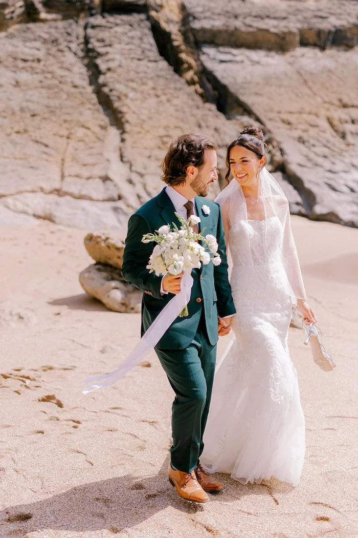 The overall look was elegant, romantic, and understated — perfectly suited to the relaxed atmosphere of a Guincho wedding.