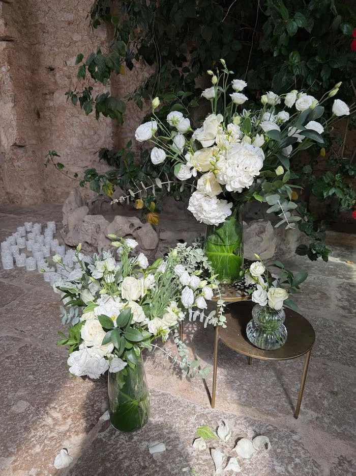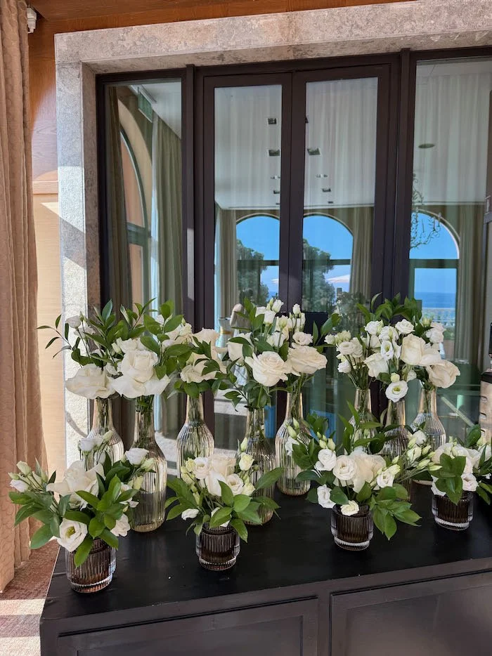 The couple envisioned a classic white and green palette, blending natural beauty with understated sophistication. Our goal was to create florals that felt fresh, romantic, and perfectly in harmony with the coastal surroundings of Estoril.